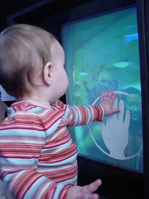 If the viewer touches the handprint, bubbles shoot out from the viewer's